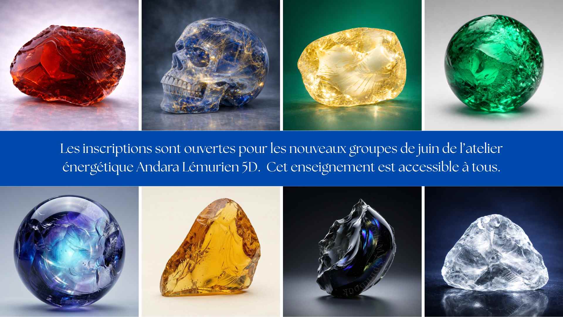 L’atelier énergétique Andara Lémurien 5D est une approche vibratoire d’harmonisation et d’élévation de conscience, reliée à la mémoire lémurienne, à la science sacrée des cristaux et à l’intelligence du cœur. Dans cet enseignement, les cristaux Andara occupent une place particulière au sein de la conscience cristalline.